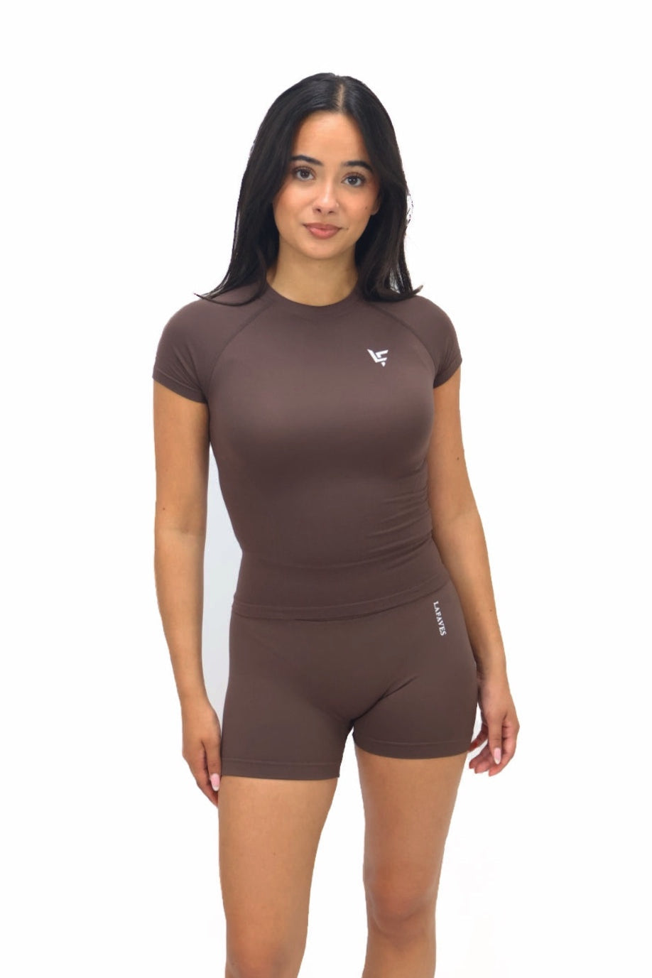 Deze bruine sporttop is de perfecte mix van minimalistisch design en functioneel comfort. De top sluit mooi aan op het lichaam en is gemaakt van een ademende, stretchy stof die met je meebeweegt tijdens elke workout. De korte mouwen en de hoge halslijn geven de top een strakke, sportieve uitstraling die je met alles kunt combineren.