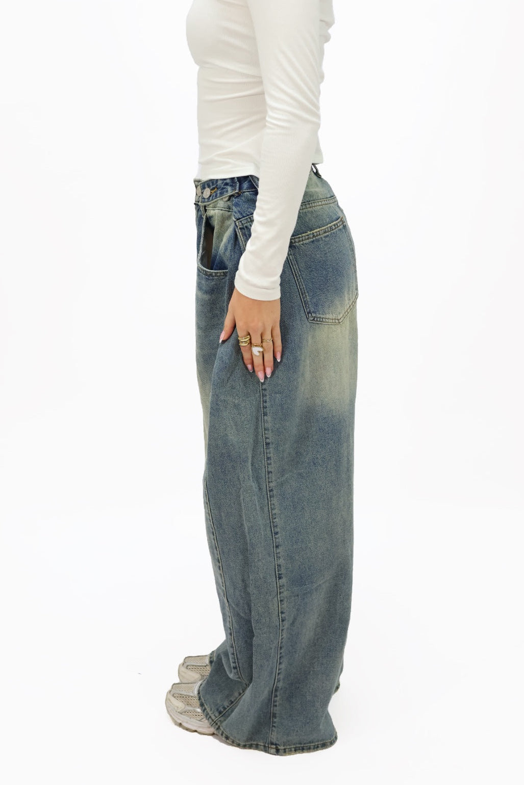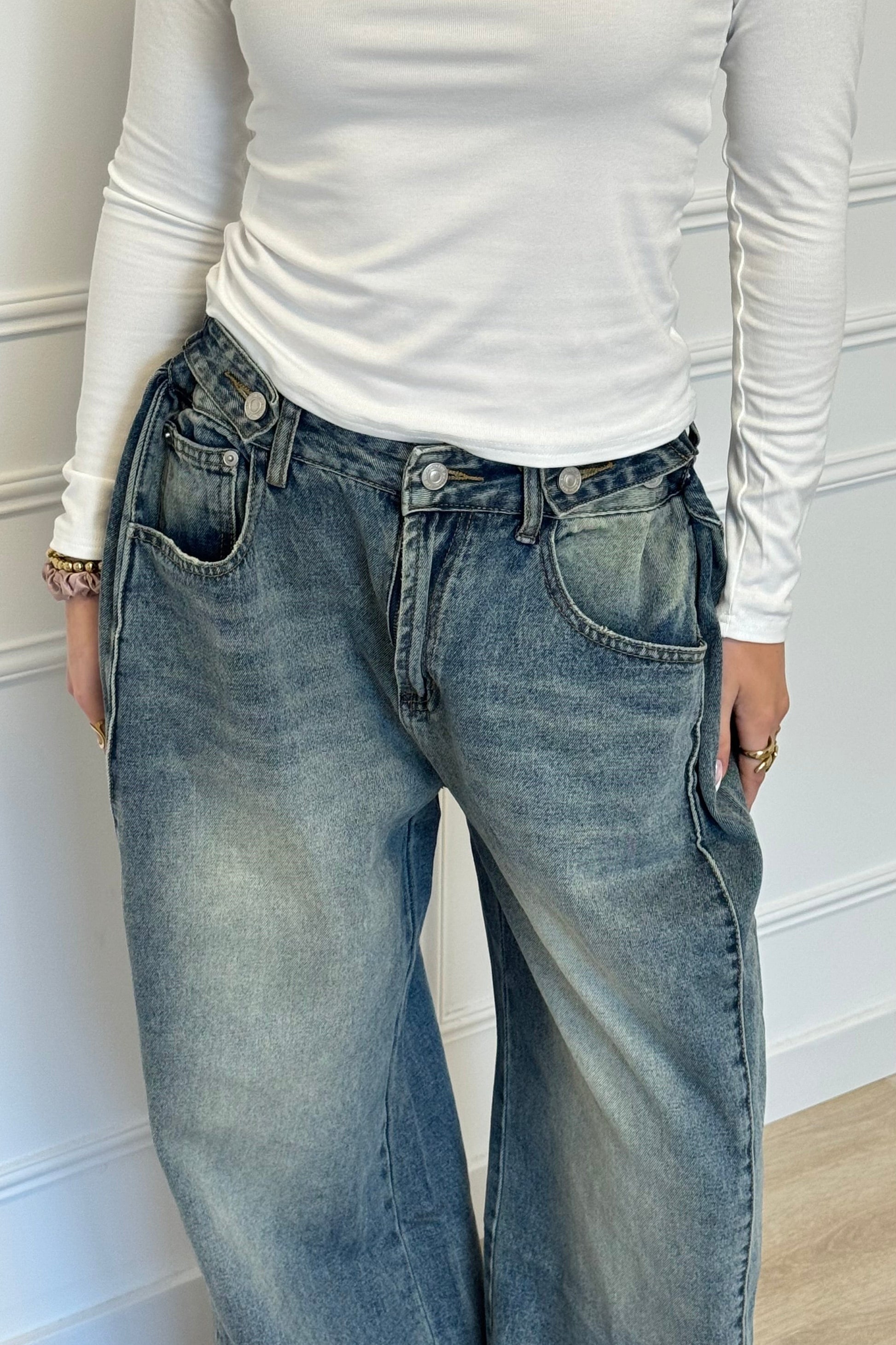 Wij zijn lang opzoek geweest naar 'DE’ jeans and it finally arrived! De jeans heeft een prachtige wijde fitting met aan de waist wel liefst 3 knopen aan de zijkant, waardoor je de jeans zo strak en getailleerd kan maken als je zelf fijn vindt, how amazing?! De wassing van de jeans is ook echt prachtig. Oftewel… its everything you need. Get your new eye catching piece now.