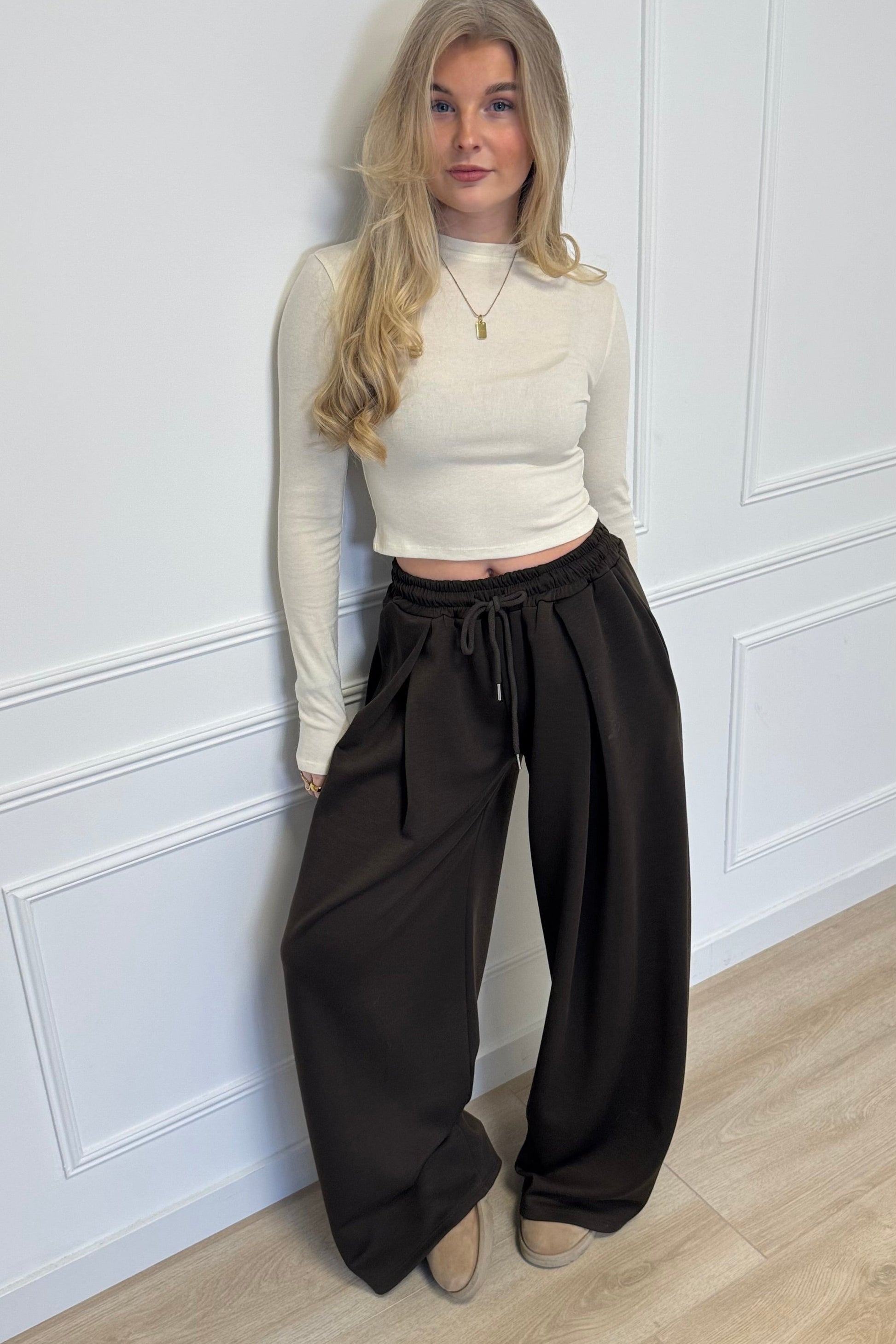 De perfecte comfy basic met een extra touch die iedereen nodig heeft! Onze 'Elisa' jogger is een echte musthave voor in jouw fashion wardrobe! De jogger is gemaakt van een fijne stof en heeft een mooie wijd uitlopende pasvorm met mooie plooi details aan de bovenkant. Mix en match de jogger mega leuk met bijvoorbeeld de 'Moos sweater' of een fijne basic zoals onze ‘Liv’ of ‘Julie’ tops. Ga voor eindeloos veel stijlvolle comfy looks met fijne basics en leuke truitjes of maak hem comfy chique met een blazer. Wij zijn helemaal obsessed!