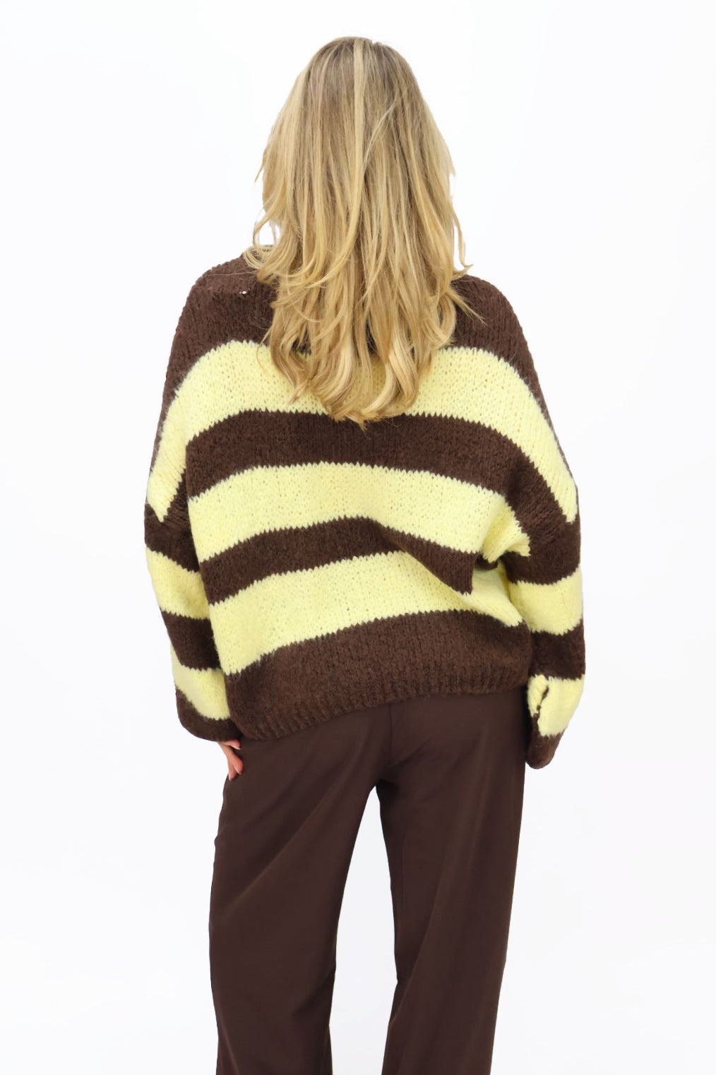 Een nieuwe variant van onze bekende knit; 'Get comfy knit STRIPES'. Strepen zijn dit seizoen onmisbaar, dus deze knit kan niet ontbreken in jouw collectie. De trui is heerlijk zacht, warm en mega stylish en zoals altijd: hij kriebelt niet!