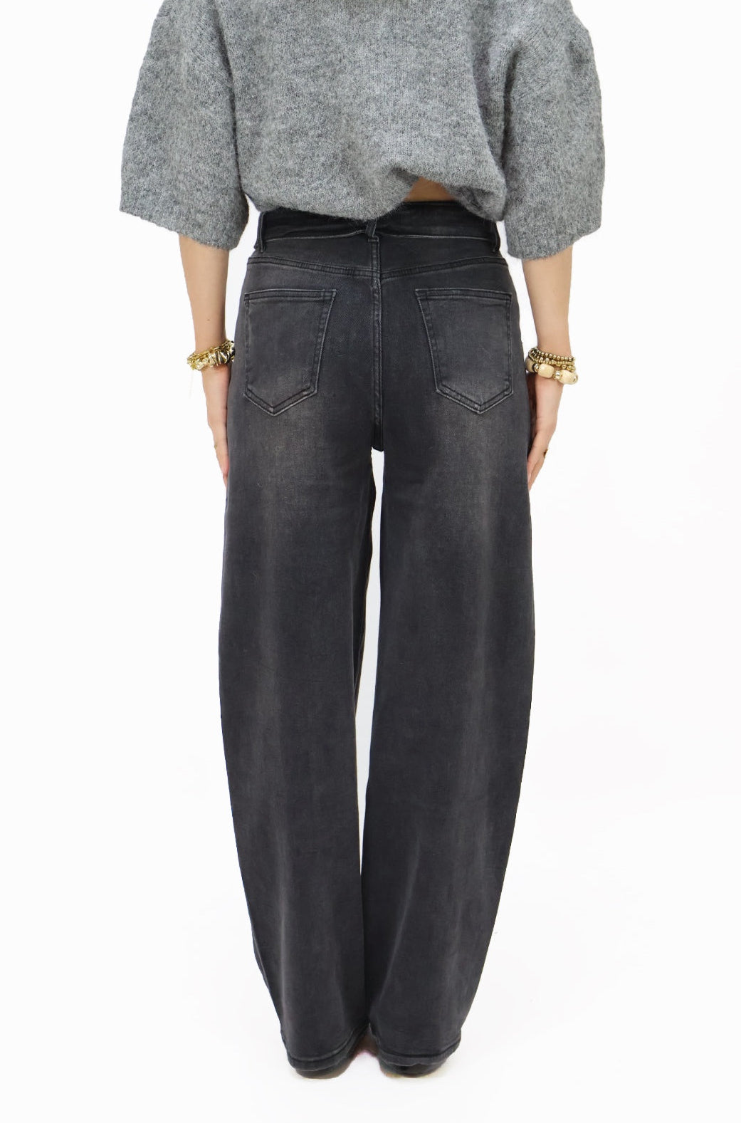 Deze grijze denim is alles wat je zoekt: comfy, trendy, wide leg én eindeloos te combineren. De relaxed fit en highwaist geven die effortless vibe, terwijl de zachte stof ervoor zorgt dat je ‘m nooit meer uit wil doen. & niet te vergeten! De ‘flap’ detail bij aan de bovenkant van de jeans, OMG! Definitely our fave so far. De jeans is letterlijk met ALLES te combineren en wil je het liefst elke dag aan!