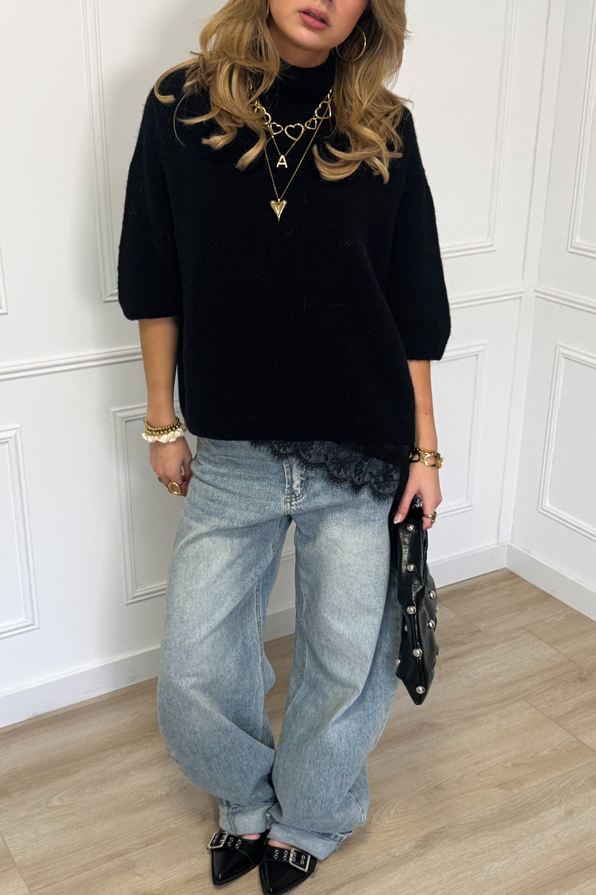 Dit satijnen t-shirt met kanten details is dé trend van het moment. De soepele, glanzende stof geeft een luxe uitstraling, terwijl het kant zorgt voor een moderne, stijlvolle look. Dankzij het tijdloze design draag je het t/shirt moeiteloos zowel casual met een knit erover en je favoriete jeans als chic onder een blazer of leuk los voor tijdens de feestdagen. Its up to you! Beschikbaar in 3 kleuren.