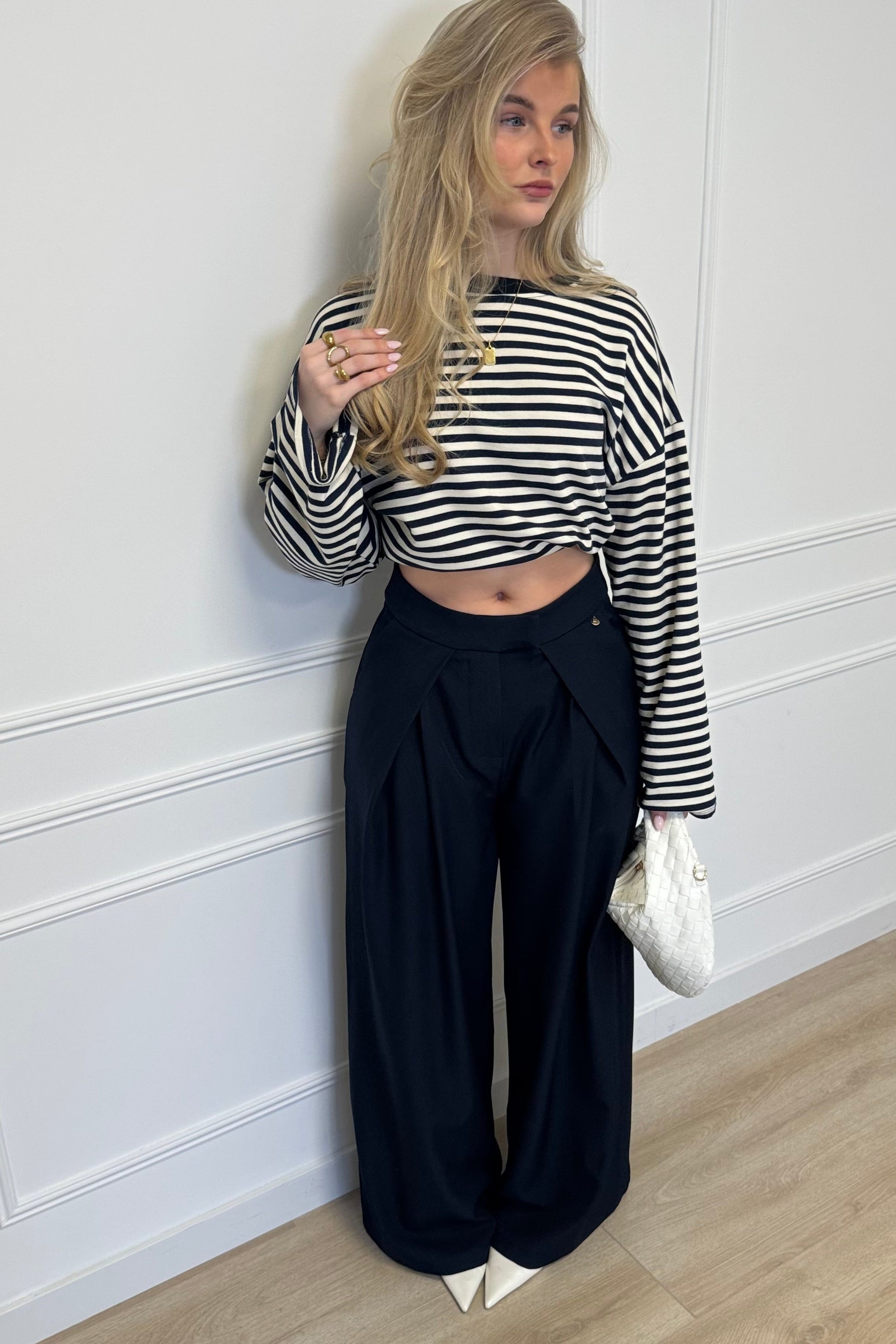 De perfecte basic met een extra touch die iedereen nodig heeft! Onze 'Valerie' pantalon is een echte musthave voor in jouw fashion fall wardrobe! De pantalon is gemaakt van een fijne stof en heeft een mooie wijd uitlopende pasvorm met mooie plooi details aan de bovenkant. Mix en match de pantalon mega leuk met bijvoorbeeld de 'Isabel zip-vest' of een fijne basic. Ga voor eindeloos veel stijlvolle looks met fijne basics en leuke truitjes of maak hem chiquer met een blazer. Wij zijn helemaal obsessed!