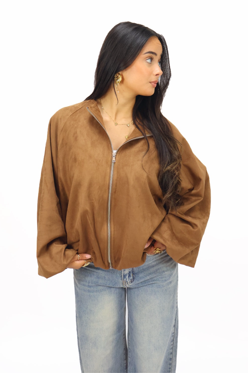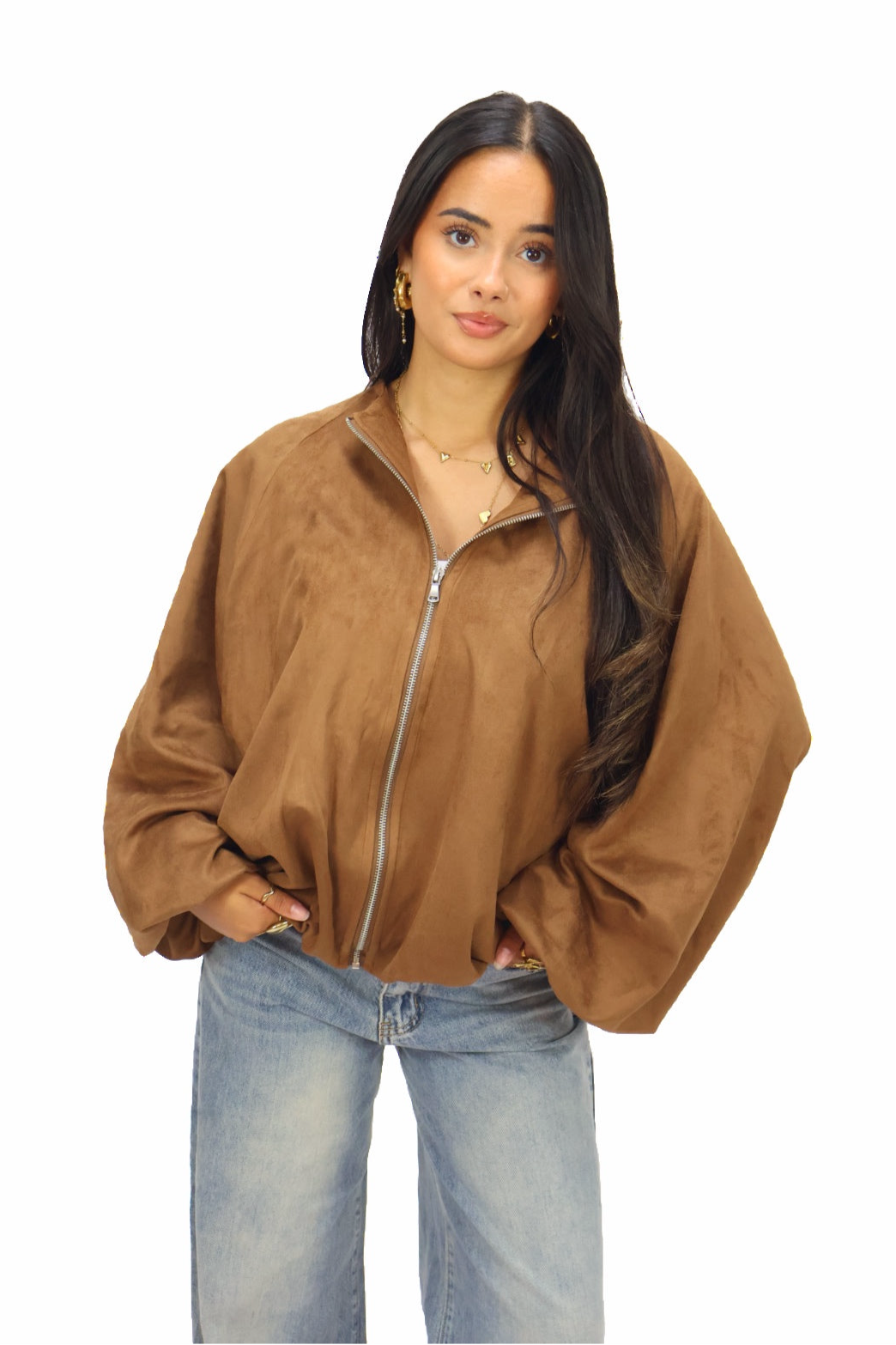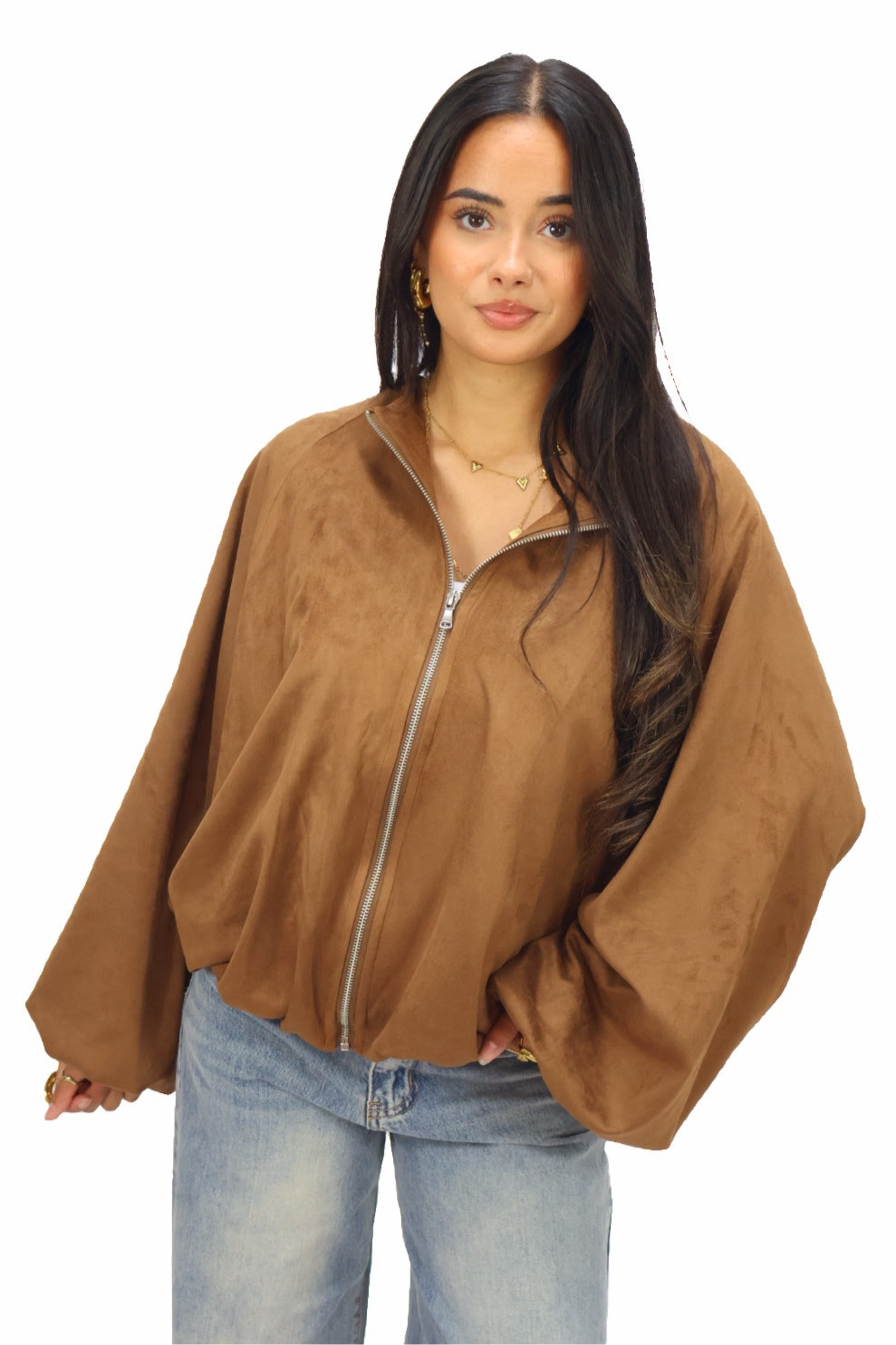 Deze Maud Jacket is dé perfecte combinatie van comfy en stijlvol. De losvallende fit en ballonmouwen geven een nonchalante, trendy look. De zachte stof valt soepel en de rits maakt 'm super easy om snel over je outfit te gooien.