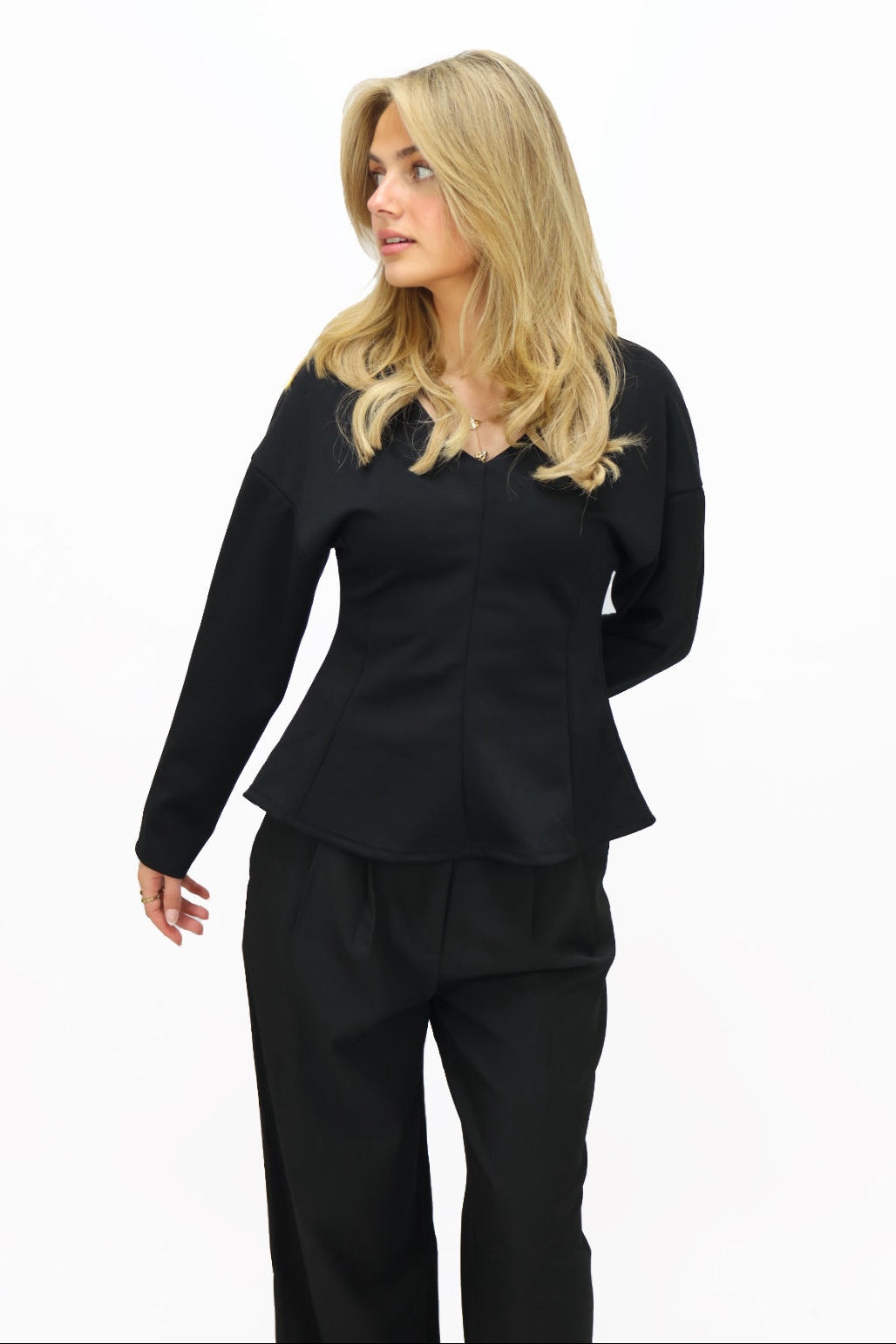 Deze stijlvolle top is precies wat je nodig hebt voor een effortless chique look! De top sluit mooi aan in de taille en loopt aan de onderkant elegant wijder uit, net als de mouwen.