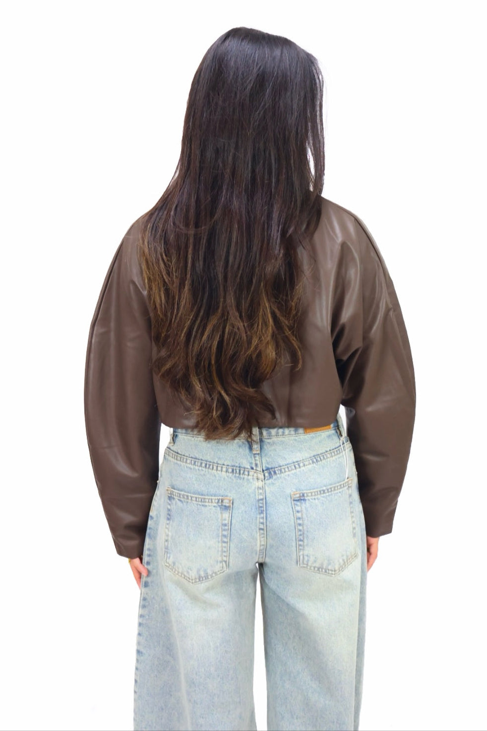 Dé musthave voor dit seizoen: een stoere maar schattige leather look cropped top in de trendy kleur bruin. Het cropped model geeft jouw outfit een edgy touch, terwijl de bruine tint warmte en luxe uitstraalt. Absolutely Linda's favourite.