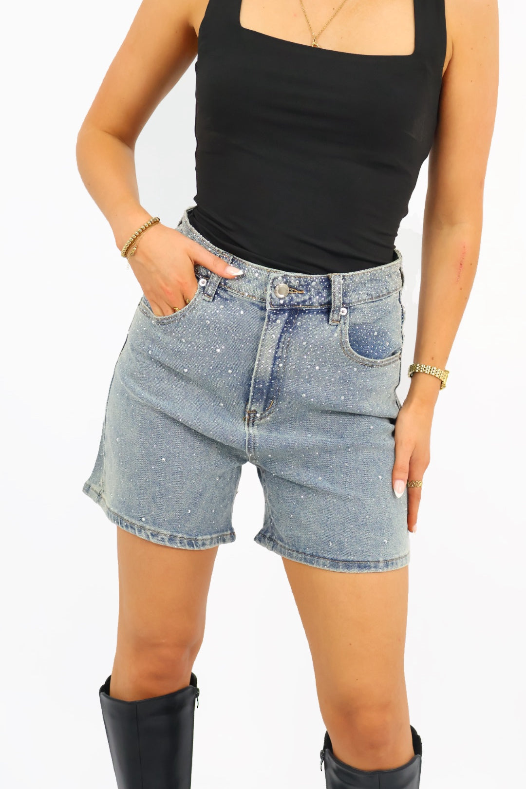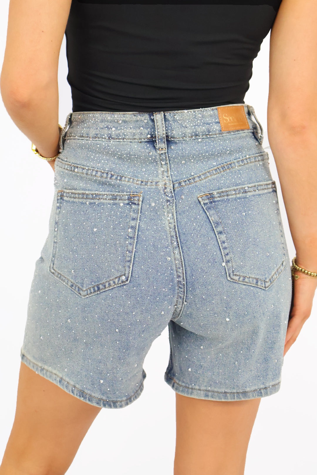TREND ALERT, but make it festive. Jorts zijn helemaal de trend van nu & we're obsessed! Hoe leuk is ook deze rhinestones variant? Perfect voor jouw volgende festival of juist om jouw casual fit een echte eye-catcher look te maken.