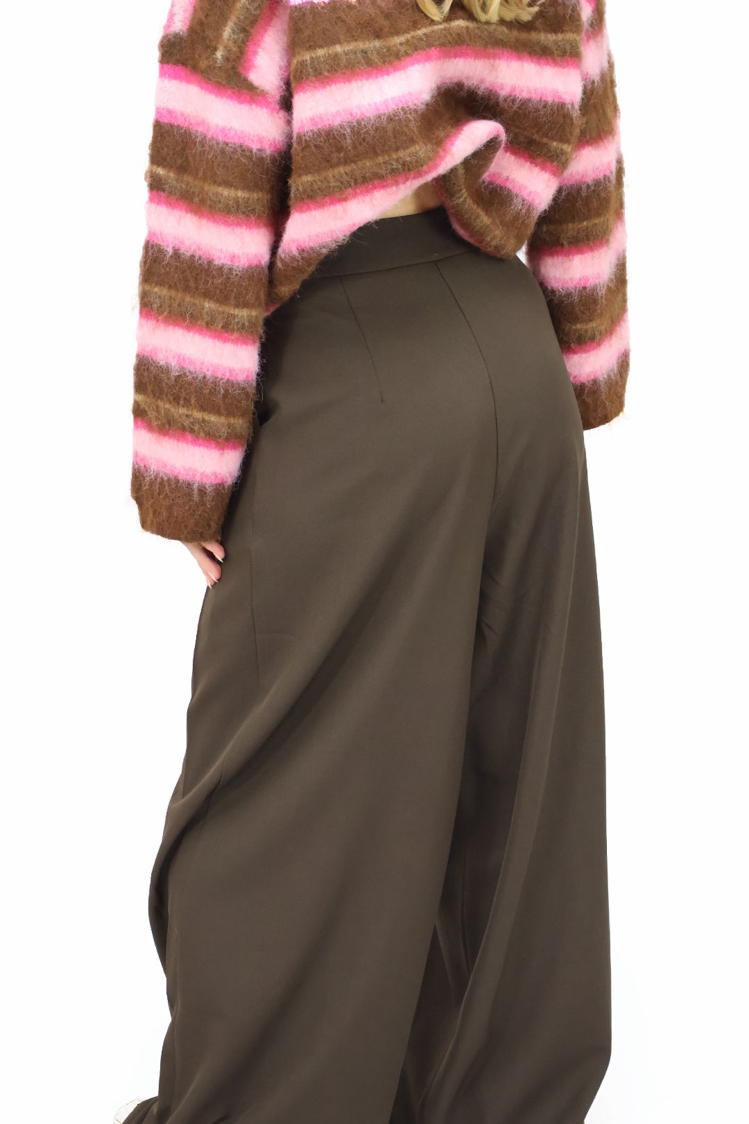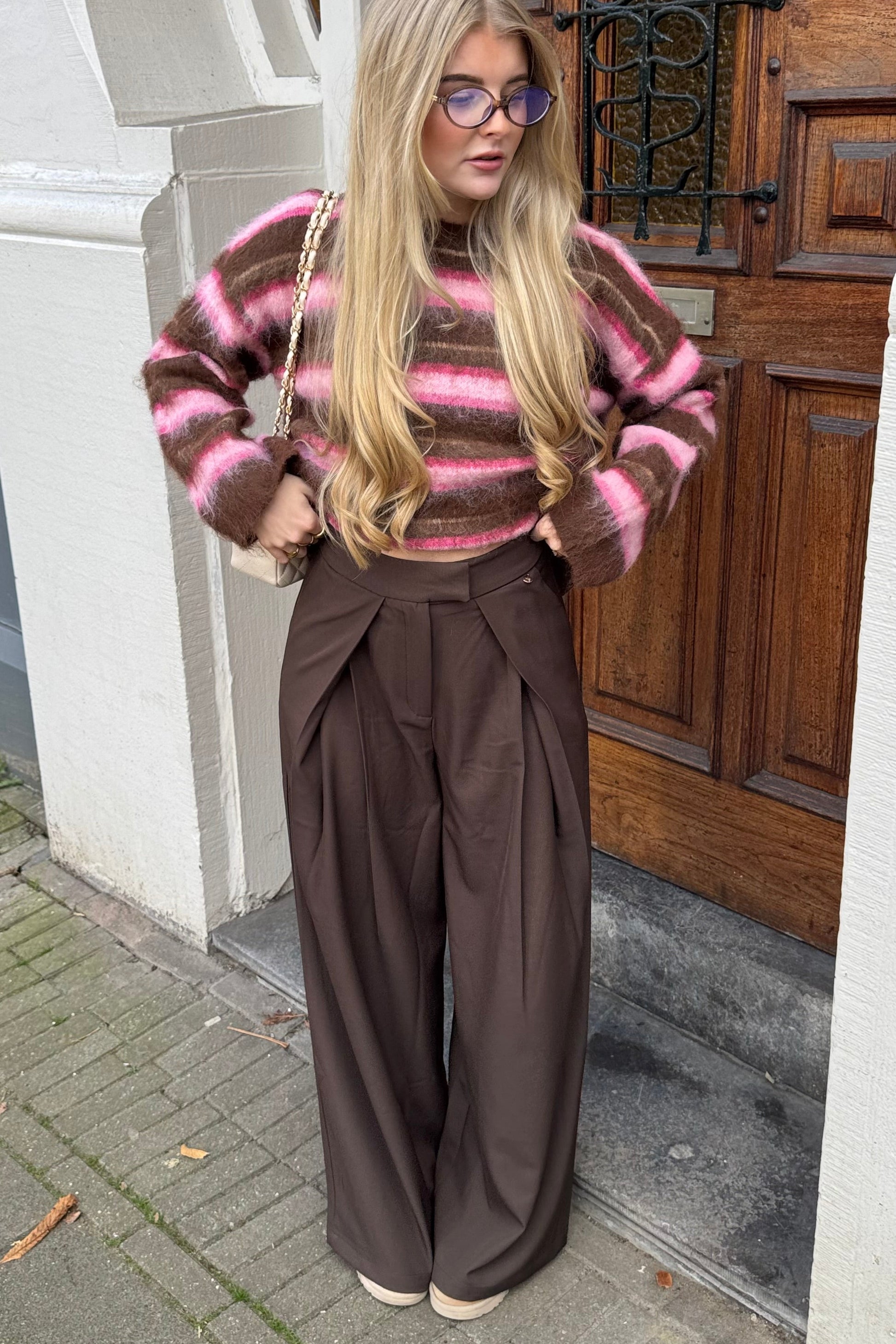 De perfecte basic met een extra touch die iedereen nodig heeft! Onze 'Valerie' pantalon is een echte musthave voor in jouw fashion fall wardrobe! De pantalon is gemaakt van een fijne stof en heeft een mooie wijd uitlopende pasvorm met mooie plooi details aan de bovenkant. Mix en match de pantalon mega leuk met bijvoorbeeld de 'Fien sweater' of een fijne basic. Ga voor eindeloos veel stijlvolle looks met fijne basics en leuke truitjes of maak hem chiquer met een blazer. Wij zijn helemaal obsessed!